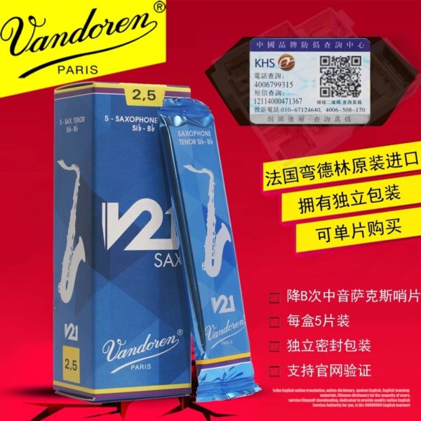 法国Vandoren弯德林V21中音降e萨克斯哨片总代授权可查真伪