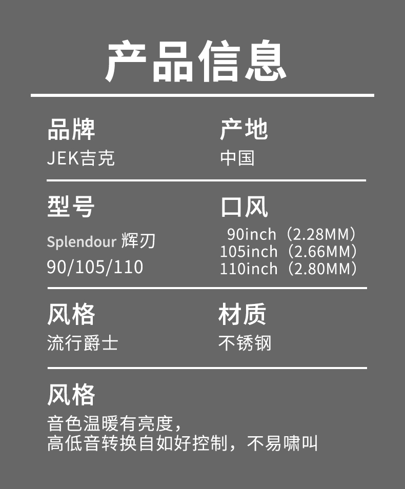 JEK吉克Splendour辉刃系列金属不锈钢Bb次中音萨克斯笛头流行爵士